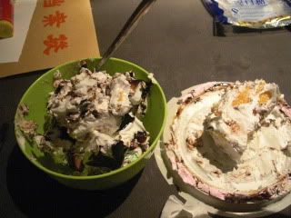 (Diary) I was up since Saturday, working through until 12AM on Sunday, my birthday. What a way to celebrate its entry. My friend called me to have some green bean soup at my room, which I suspected was something fishy. When I opened the door, it was pitch black. The whole of the ID group was there, screaming Happy Birthday and jumping out from no where trying to scare me, one of the best ones was from behind the curtain. They wrote wishes on balloons which they wanted me to eventually burst, and had some terrible after-effects on the bed. Black stains that is. They even wrote on the mirror, hopefully with washable art paint. It was really a surprise for me! Or at least I never had expected everyone to be there. Cake, as traditionally always there, was there. It was chocolate cake, or was it cream cake. The cake was ten percent sponge with the remaining as cream in different colors, with an additional topping of cream in a shape of two fat flowers. Truly disturbing when I tried to cut through it.